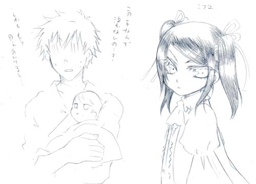 右が出産予定だったオリキャラちゃんです。どっちかというと父親?似。