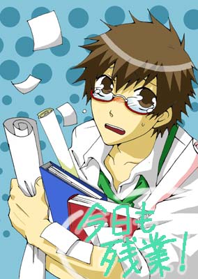しかしこれは眼鏡かけてるせいかリーマンっつうより実験準備中の科学の先生みたいになっちゃったな。会社員の経験がないのでよく分からないが唯一伝票だけは馴染みがある。伝票は伝票でも修理伝票。モノを大破させた時は大抵「引っ張ったら抜けた」などの非常に簡潔で分かりやすい説明をつけて降ろしてます。多分簡潔過ぎて文句も言えねぇだろうな。(事務員泣かせ)