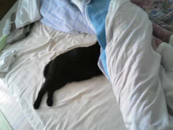 この日は晴れて暑かったのに何故か布団に顔だけ突っ込んで寝ておられたレン。