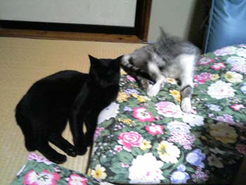 折りたたみに一昨日撮った猫写真。相変わらず大人しく撮られてくれないレンとアキラ。