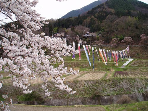 嘘ですこいのぼりです。多分どこの地元にもあると思うけどこの時期になるとこいのぼりがズラーッと吊るされます。風のある日は壮観ですが雨が降った日は悲惨ですよ。(魚の日干し過ぎて)