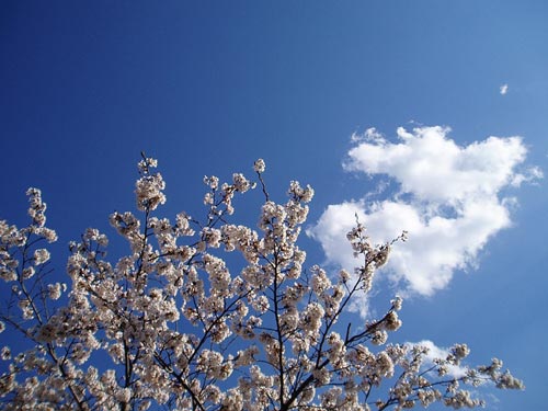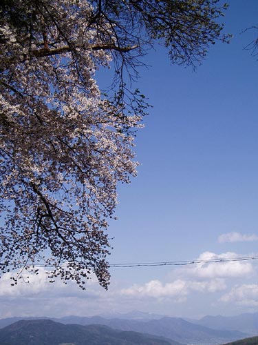 家より上に上った所。まるで桜の下に雲があるみたい。
