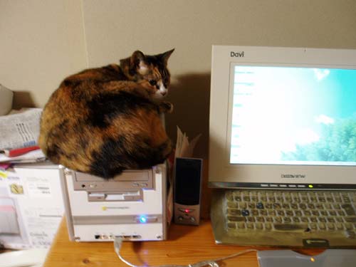 パソコンいじってるとかまって欲しいお肉様が本体の上に乗ります。壊れたらどうする。