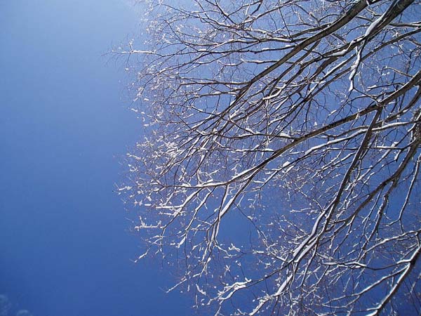 ふと風が吹いて周りがキラキラしたので見上げてみたら木に降り積もった雪が細かく散っていた。