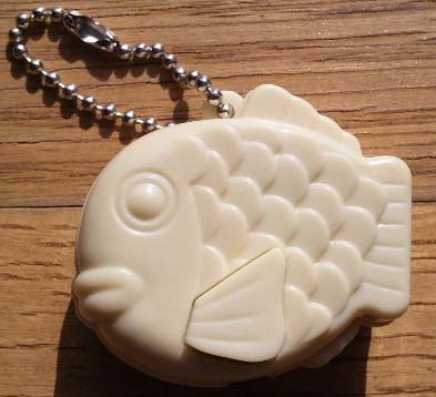 これは地元にもあるたいやきクンのガチャですが、蓄光で光る白いたいやき(レア)が欲しいけどどうせ出ないだろうな…と諦めて挑戦した事はありませんでした。したら大阪の電気屋さんで一発で出た。