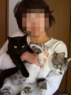 妹の携帯で撮ってもらいました。二匹揃うと、お、重い…!