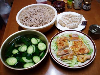 右上の餃子を焼いた後にトンカツが食いたくなって右下の豚肉を調理。トンカツじゃねーじゃん。