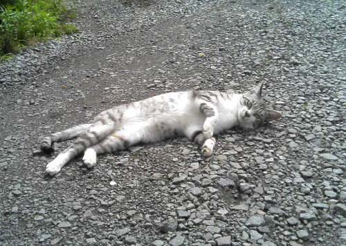 そして車道でくつろぐアキラ様。何故そこで。